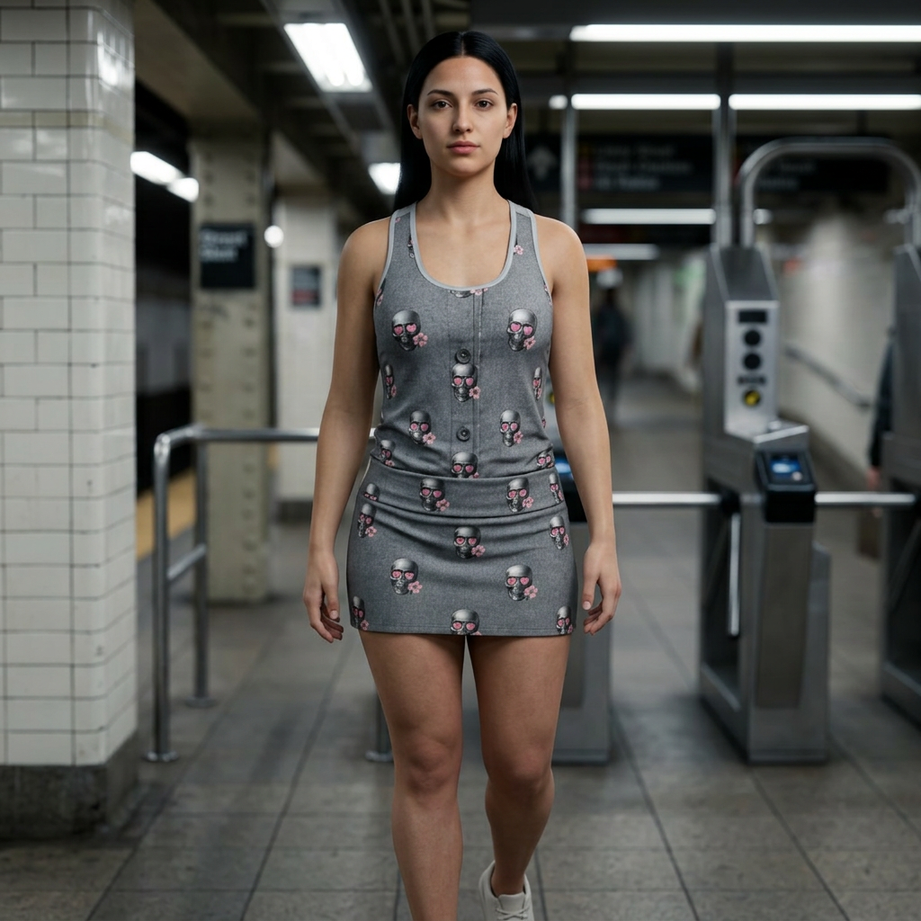 Racerback Dress — Pink Skull Pattern & "Platinum Tag" Logo
